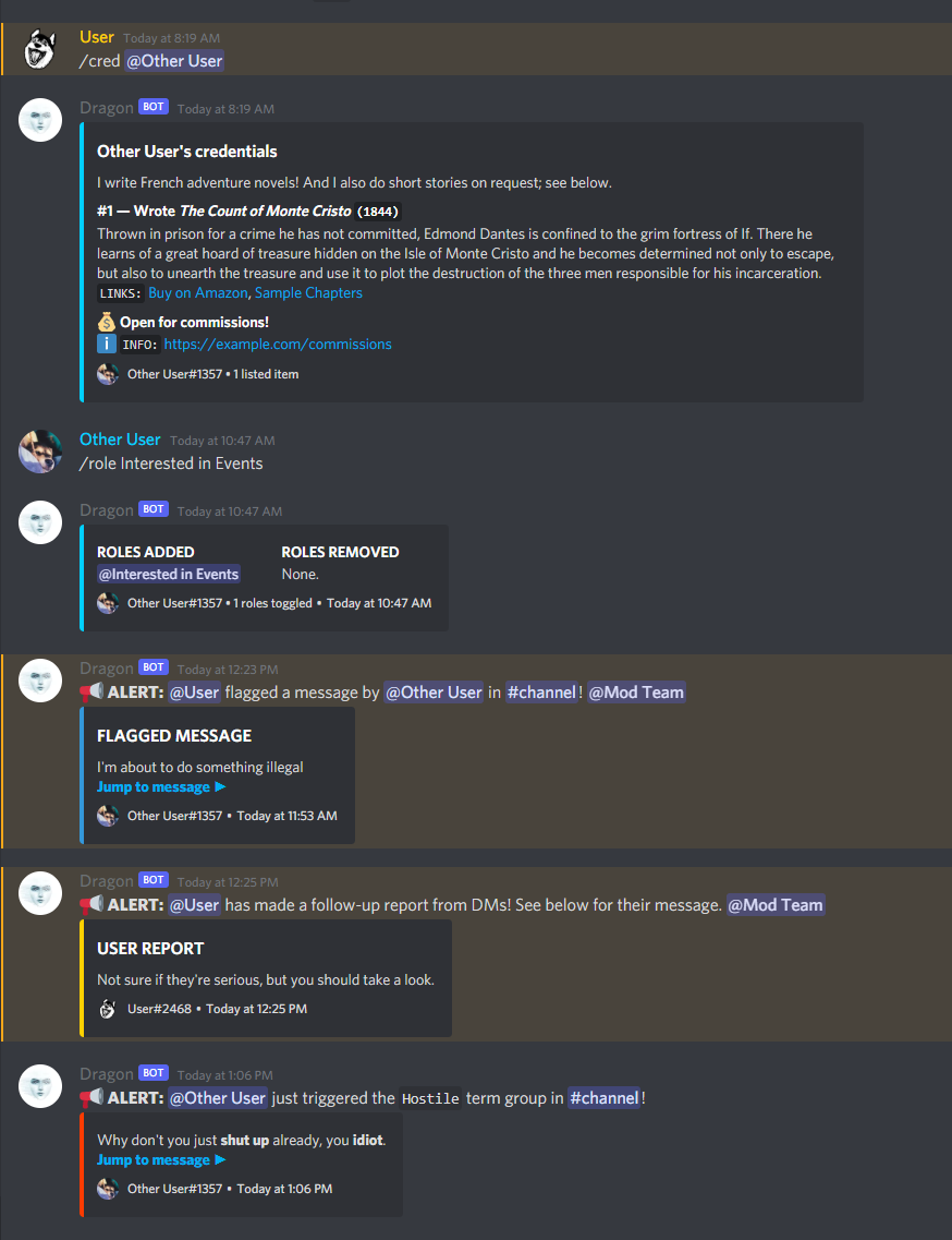 A Discord integration written in Node.js, Dragon offers more than 50 unique features to creative communities, as well as administrative and moderation features to assist the organizers of said communities with demanding managerial tasks.